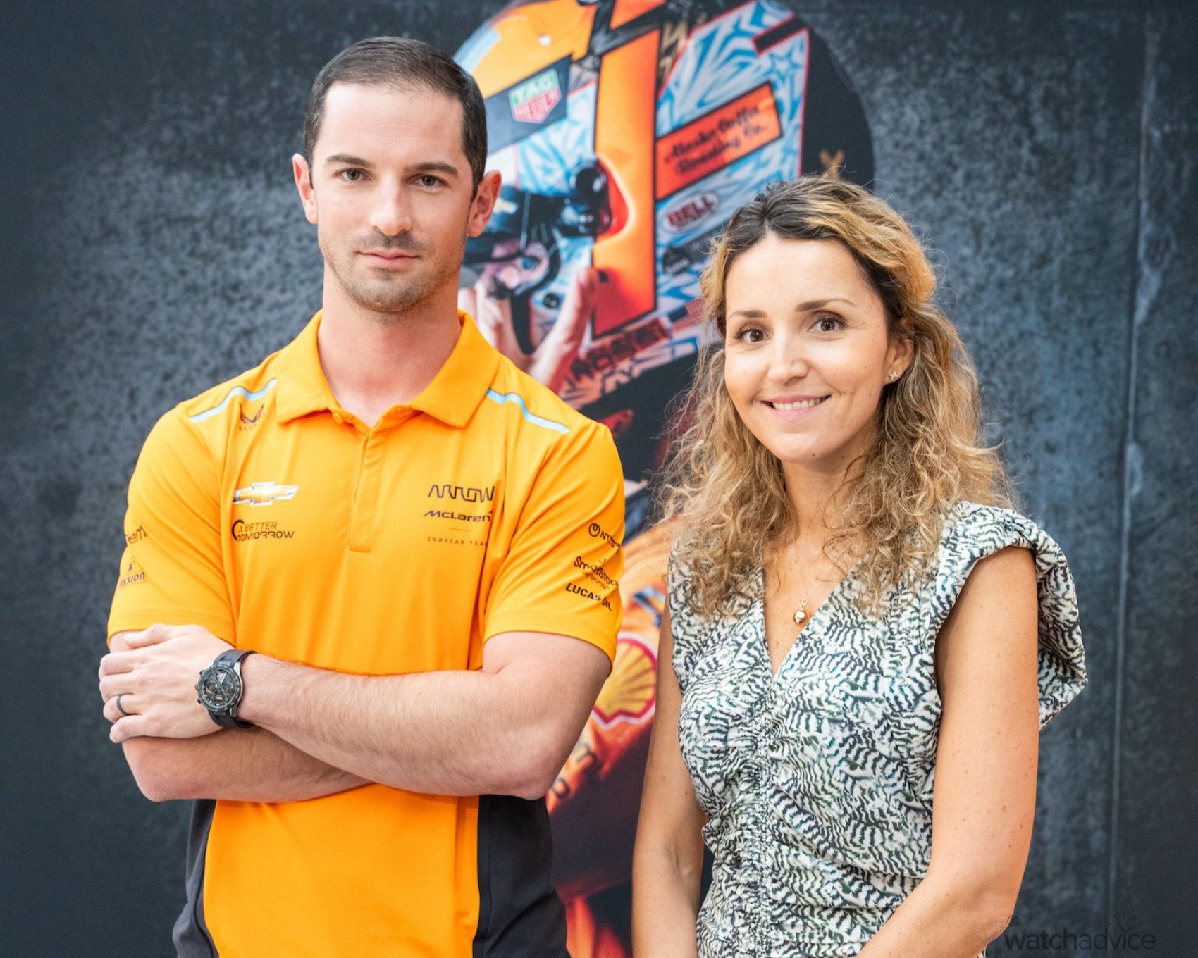 Indy Car Driver Alex Rossi with Béatrice Goasglas in 2024 at TAG Heuer Nashville’s grand opening. Image courtesy of nashvillelifestyles.com