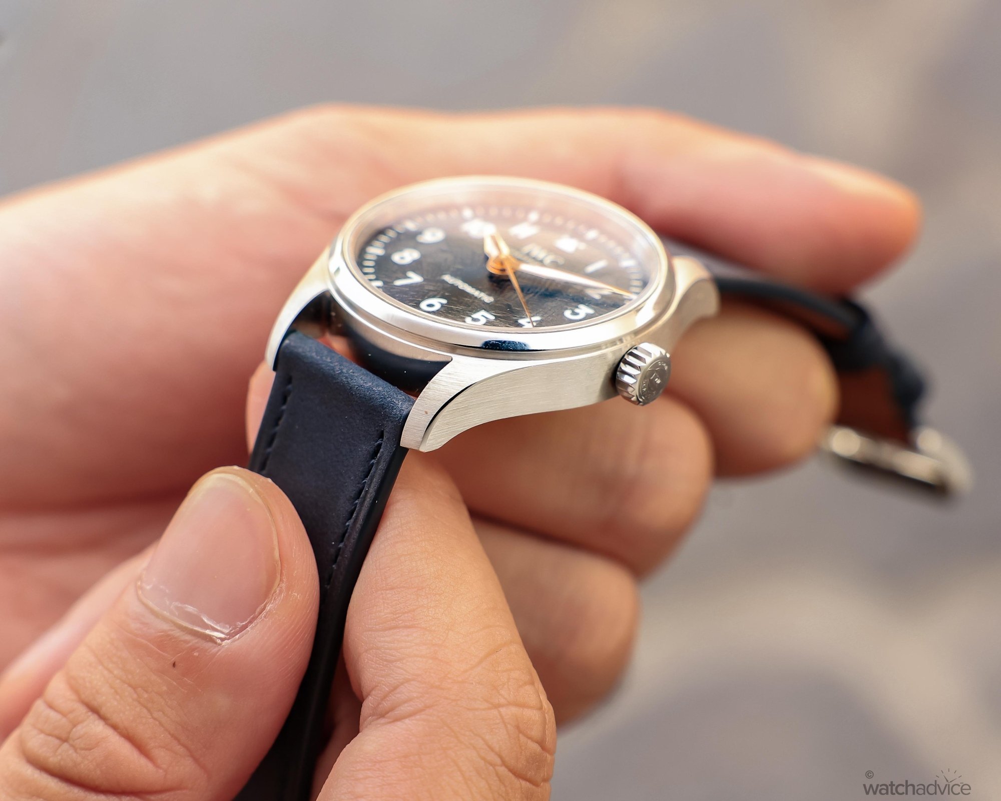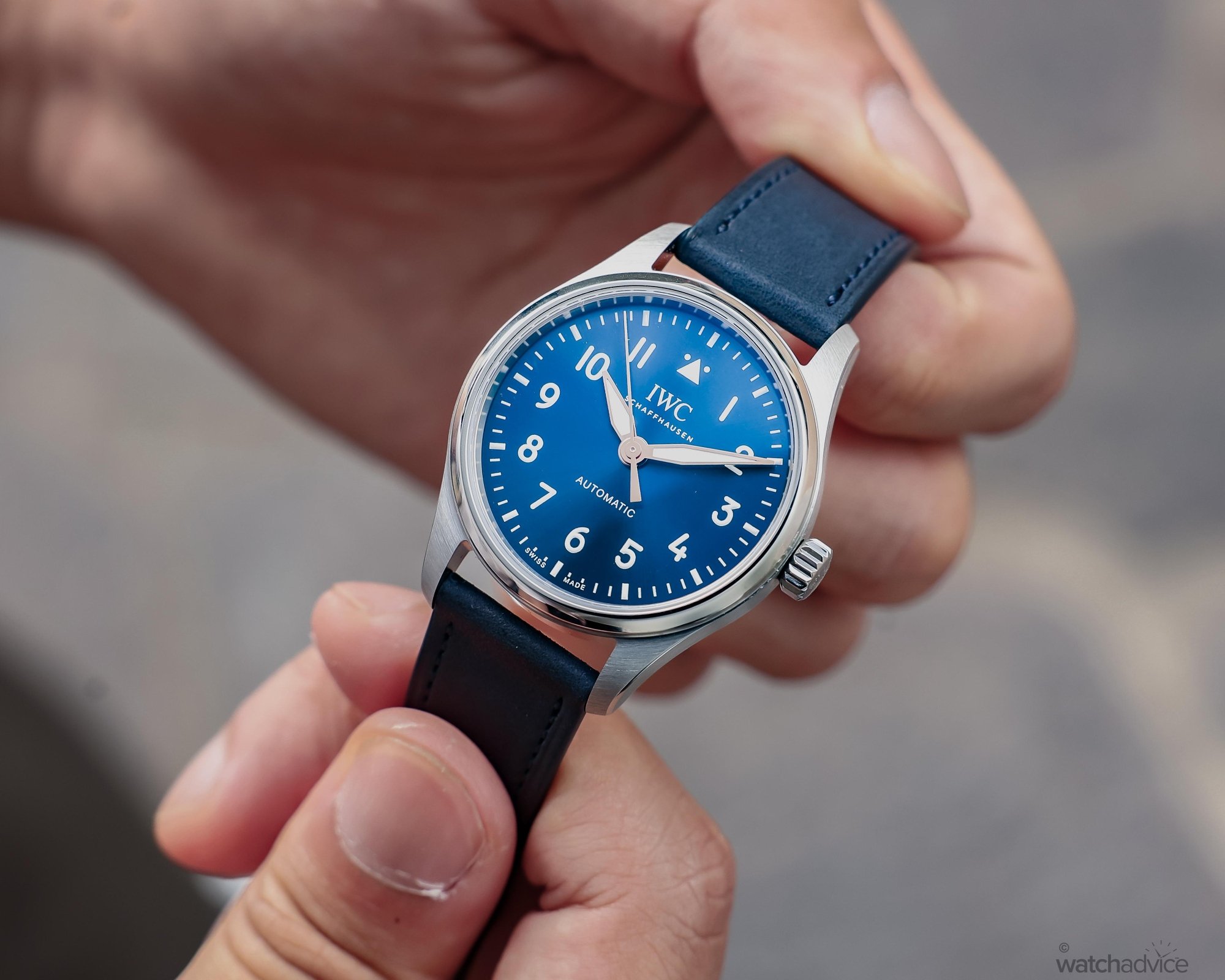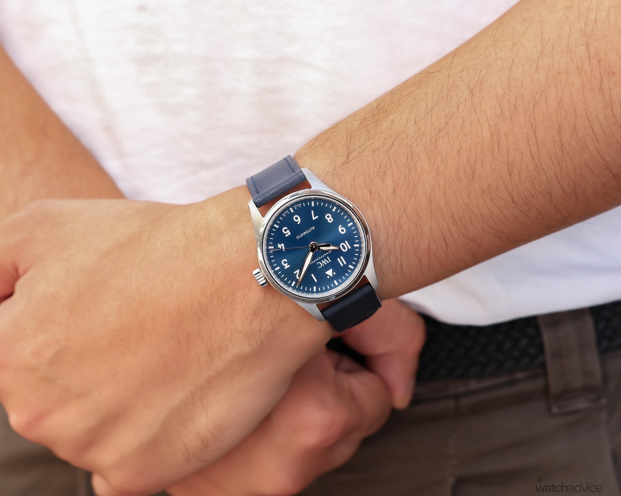 Further enhancing the wearability of the watch is the blue calfskin leather strap. While it loses some of the ‘cool’ factor of the previous Santoni alligator strap, it’s a small sacrifice, and one I believe was necessary. Given the simplicity of the Pilot’s Watch design, an alligator strap felt like it was caught between dramatic flair and pragmatic purpose. Interestingly, it doesn’t come with any interchangeable strap system, an omission that extends across the other 36mm models.