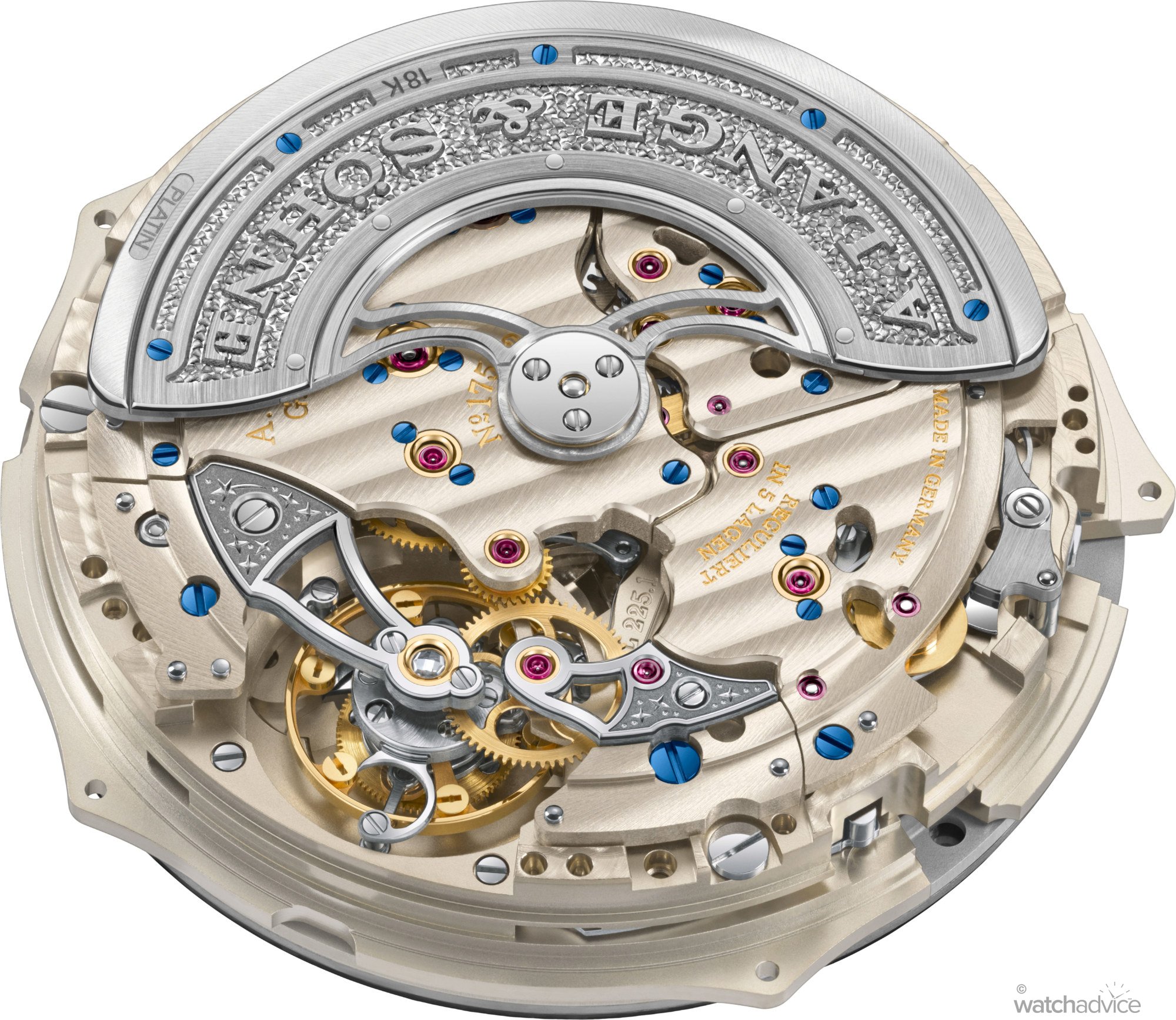 Inside the Lange 1 Tourbillon Perpetual Calendar “Lumen” is the new Calibre L225.1. Lange is not a watchmaker that makes modular movements, i.e. bolts on a module to a pre-existing calibre to form a new movement, as you would with a chronograph onto a time-only movement, as an example. A. Lange & Söhne creates each movement individually to suit and fit the watch it is designed for.