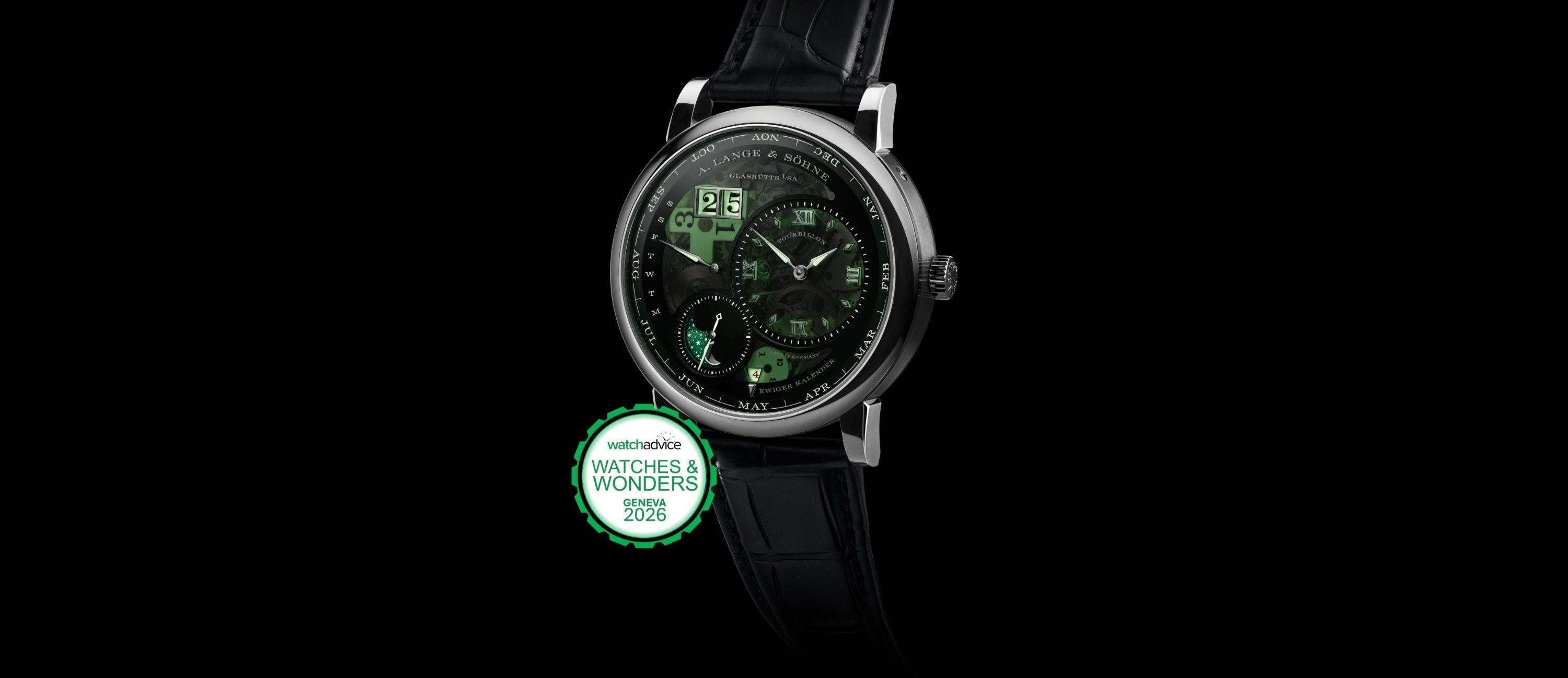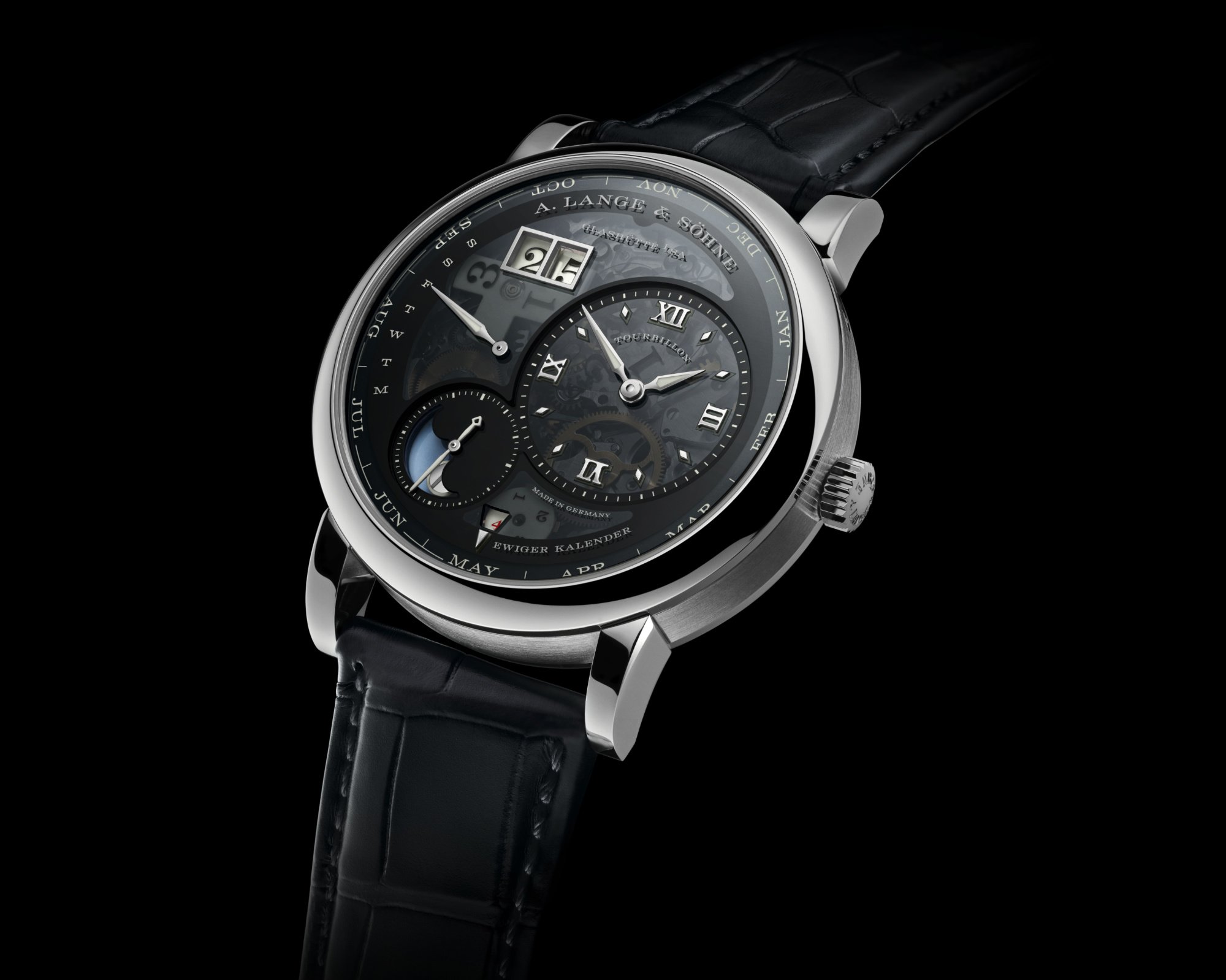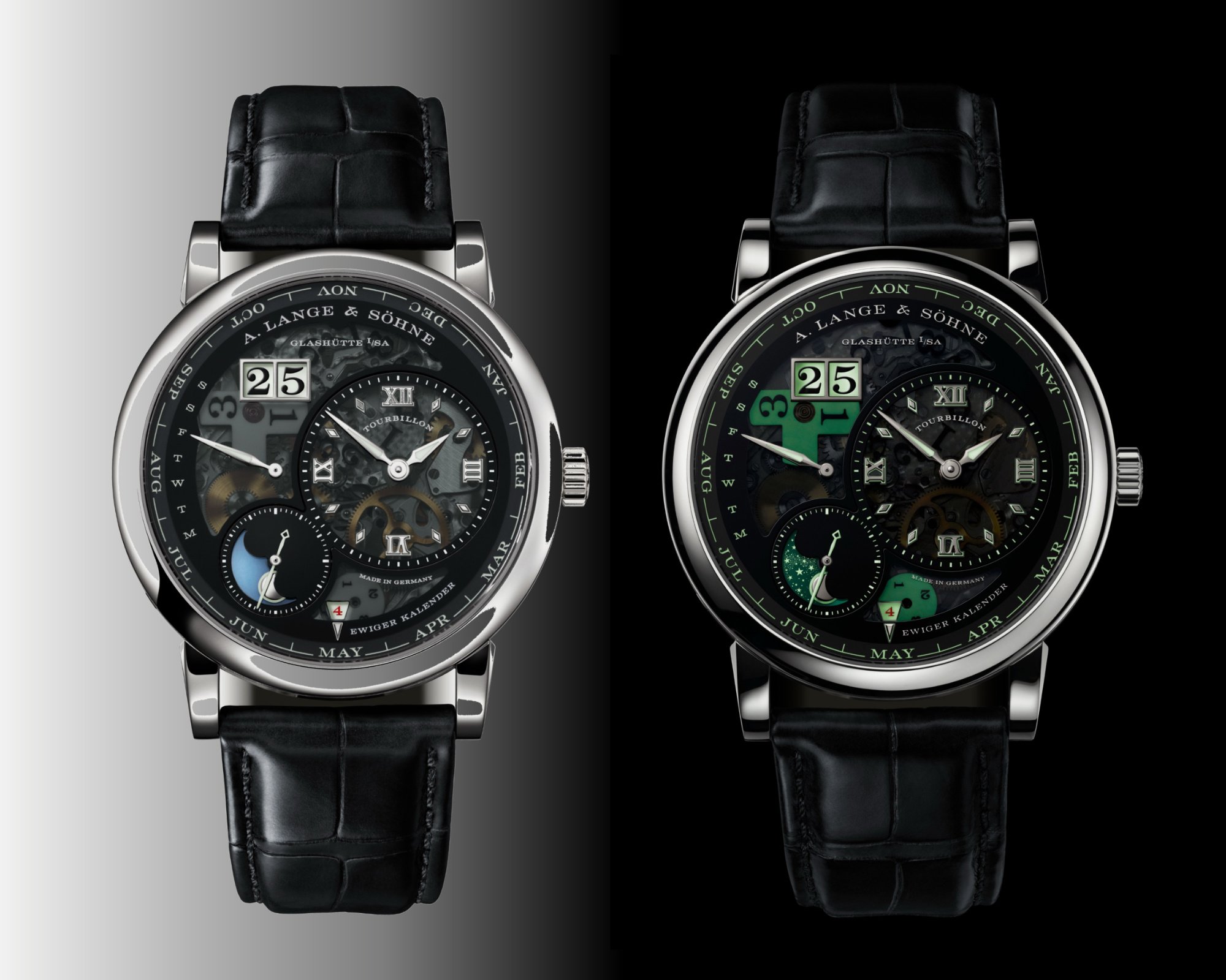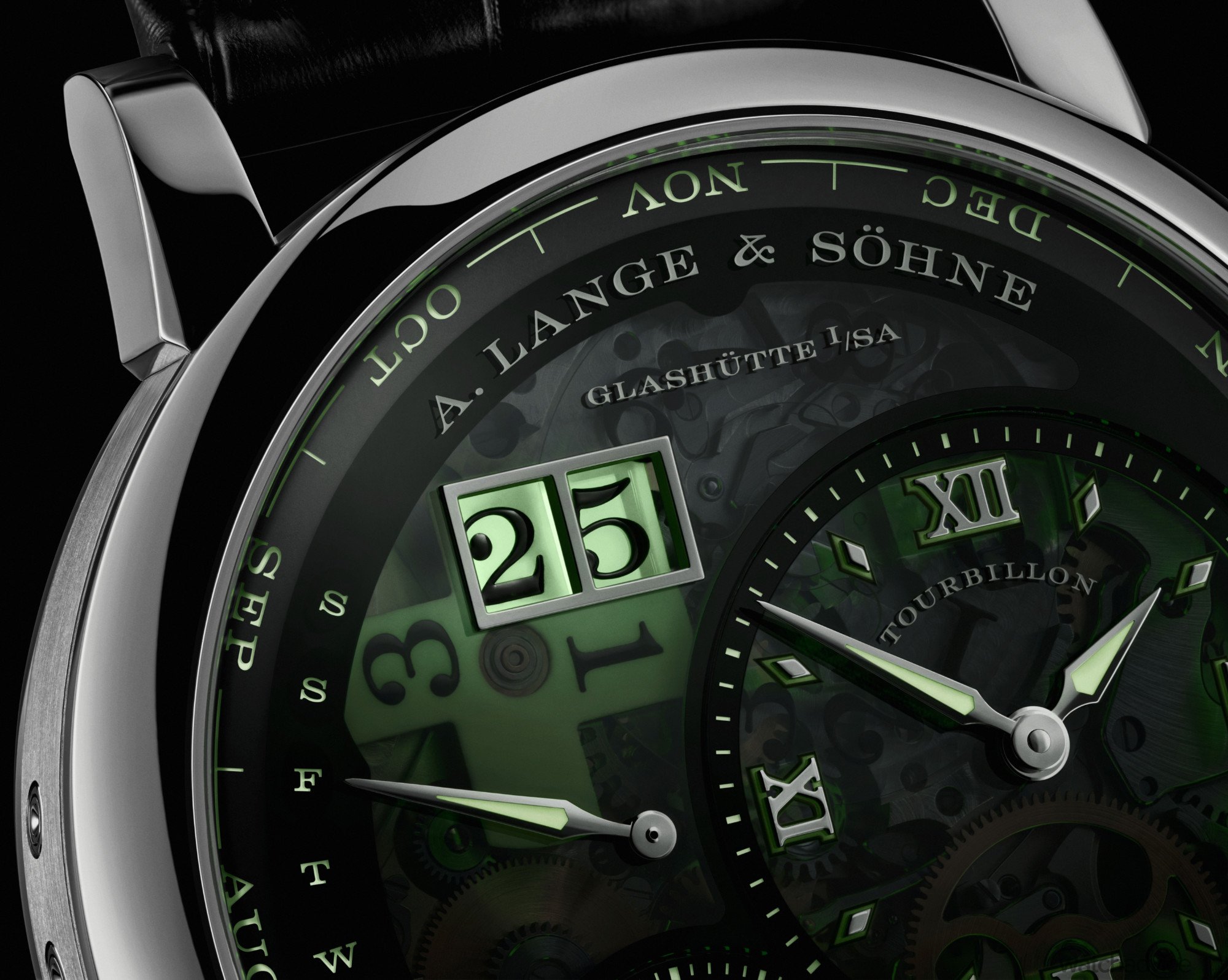 The new Lange 1 Tourbillon Perpetual Calendar “Lumen” shows off the movement and indications equally well, day or night