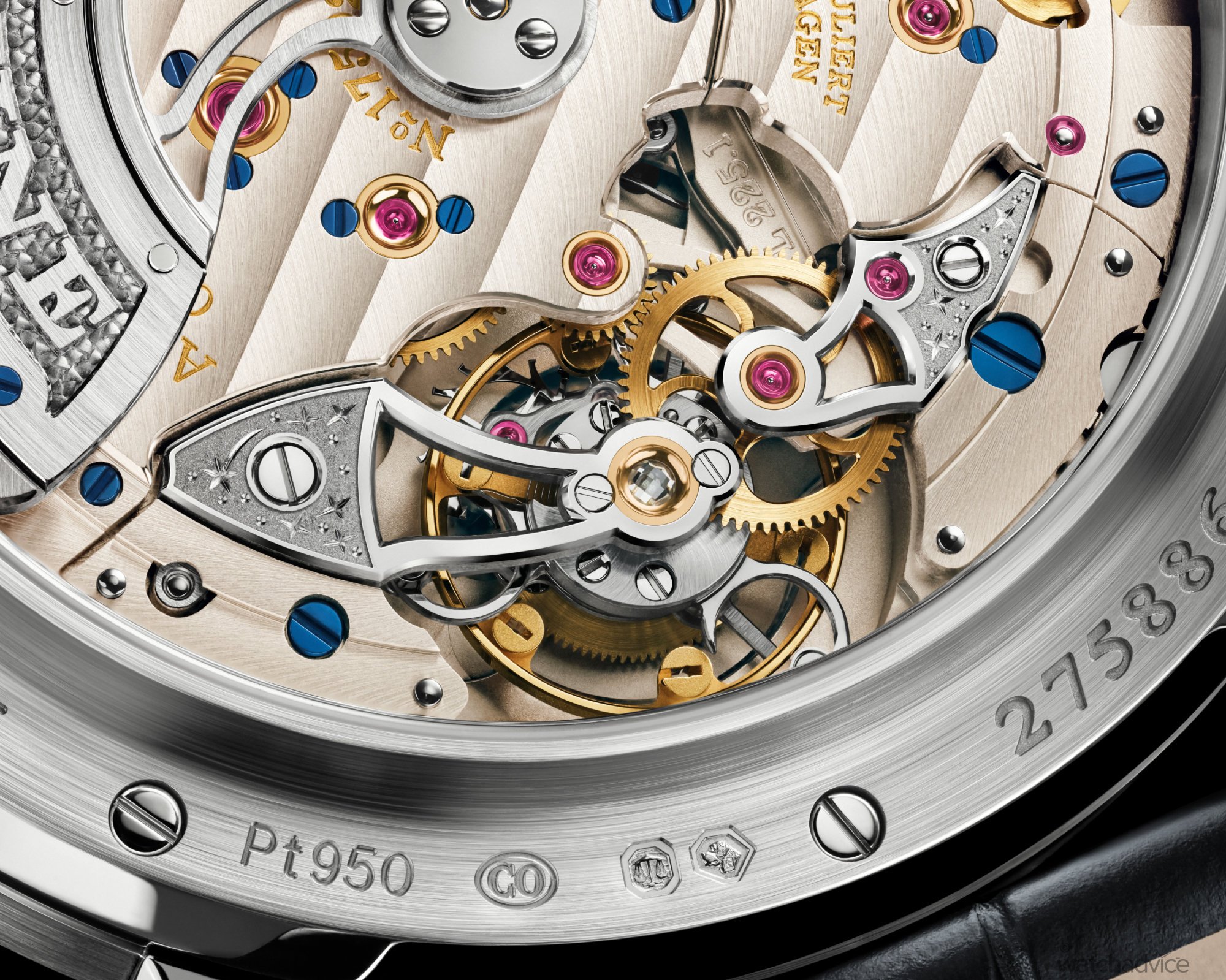MovementLange manufacture calibre L225.1 automatic movement beating at 3Hz / 21,600 VpH with a tourbillon and perpetual calendar. Moonphase accurate to 122.6 years, hand adjustment to be done in 2100