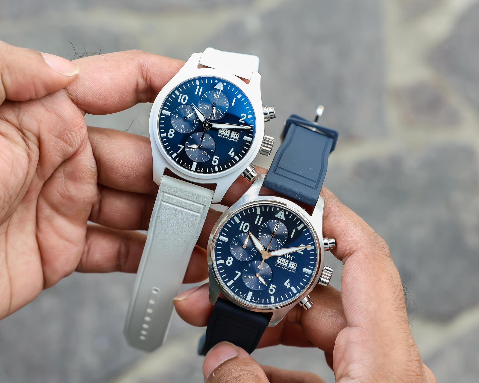 A signature design element of IWC’s ceramic pieces, which in this case references the Lake Tahoe edition released in 2022, is the chronograph pushers and crown being done in steel. This helps retain part of a traditional aesthetic within a very contemporary design. The 41mm case is certainly welcome, especially in my case, where I have slightly slimmer wrists (16cm). While the 44.5mm is not the worst fit, the 41mm certainly sits a lot nicer, with the lugs just extending to the contours of my wrist.