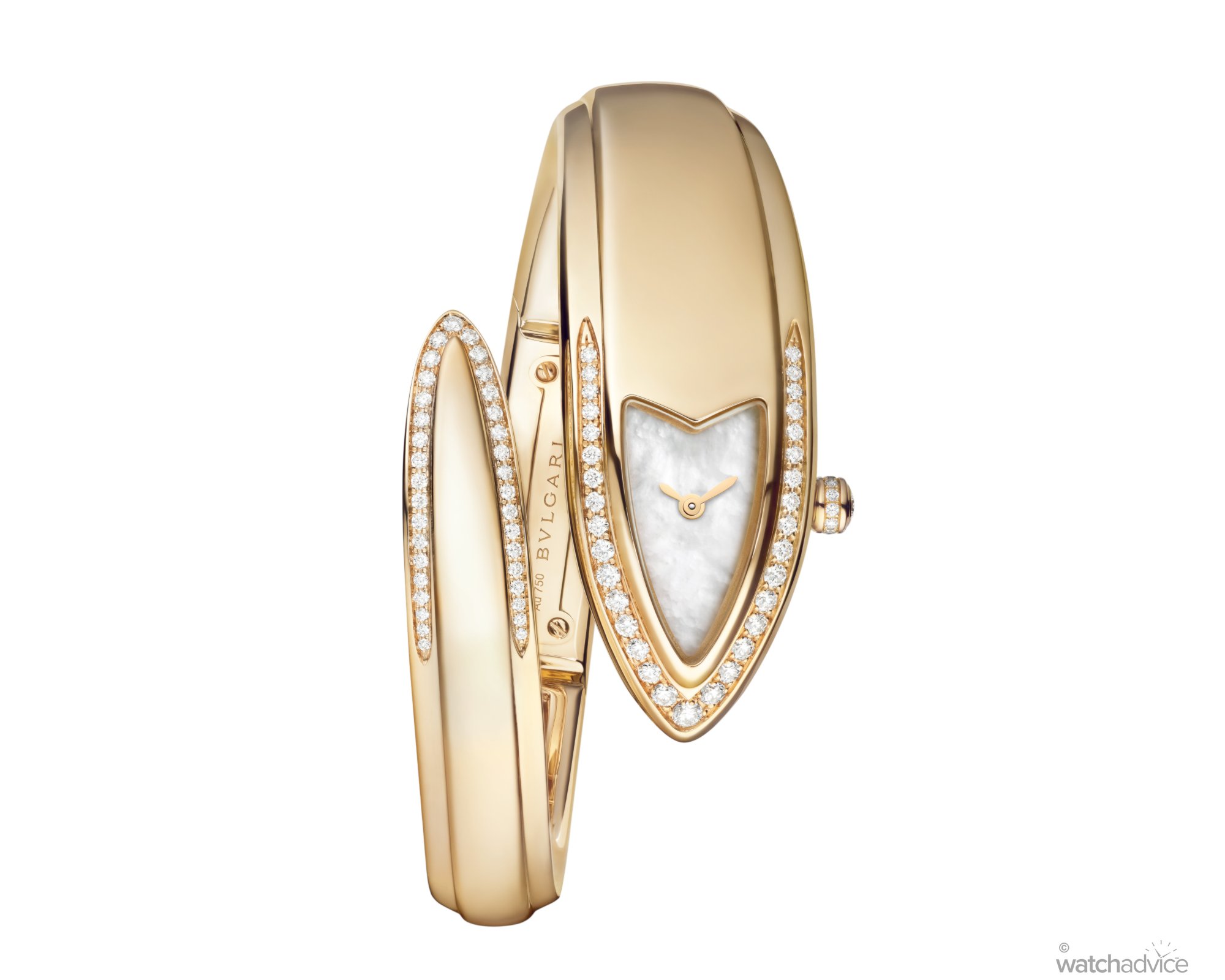 The Serpenti Aeterna timepieces are unlike most featured here on Watch Advice, but that does not make them any less impressive to behold. Measuring 24mm in diameter, and either 145mm or 155mm in total length, the duo are presented as bangle watches. Like a majority of the Serpenti line, these pieces are designed to wrap comfortably around the wrist without the use of links. While not as flexible as the Serpenti Tubogas line, the ingenious clasp, which sits flush with the watch, aids in wearability.