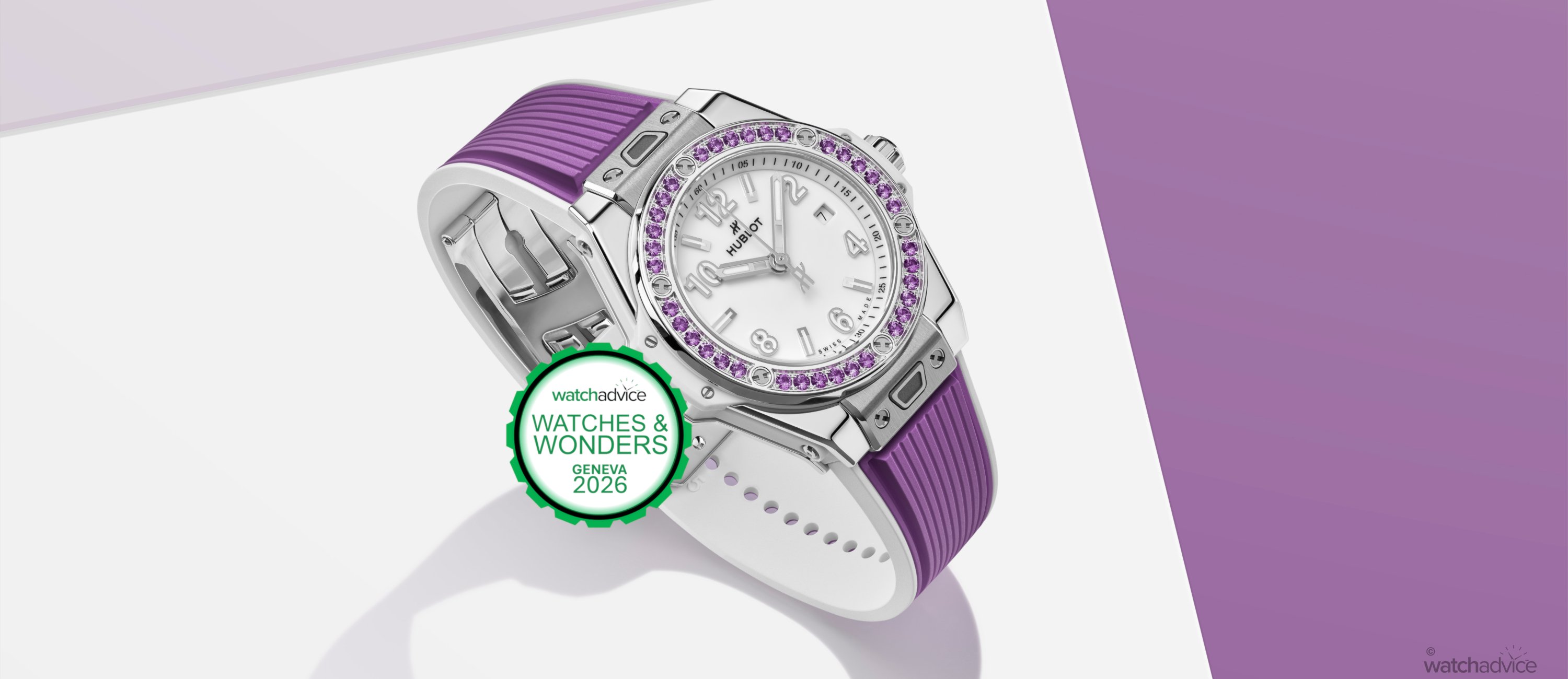 At last year’s Watches and Wonders, they introduced the Big Bang One Click Joyful collection. With vibrant colours such as Sky Blue, Apple Green, Pink, and Orange, each paired with matching gemstones, this women’s rendition of the popular Big Bang became a not-so-serious sensation at the world’s biggest watch fair. With that success, it seems there was still room for one more. For Watches and Wonders 2026, Hublot has unveiled the Big Bang One Click Joyful Steel Purple, which joins the existing collection.