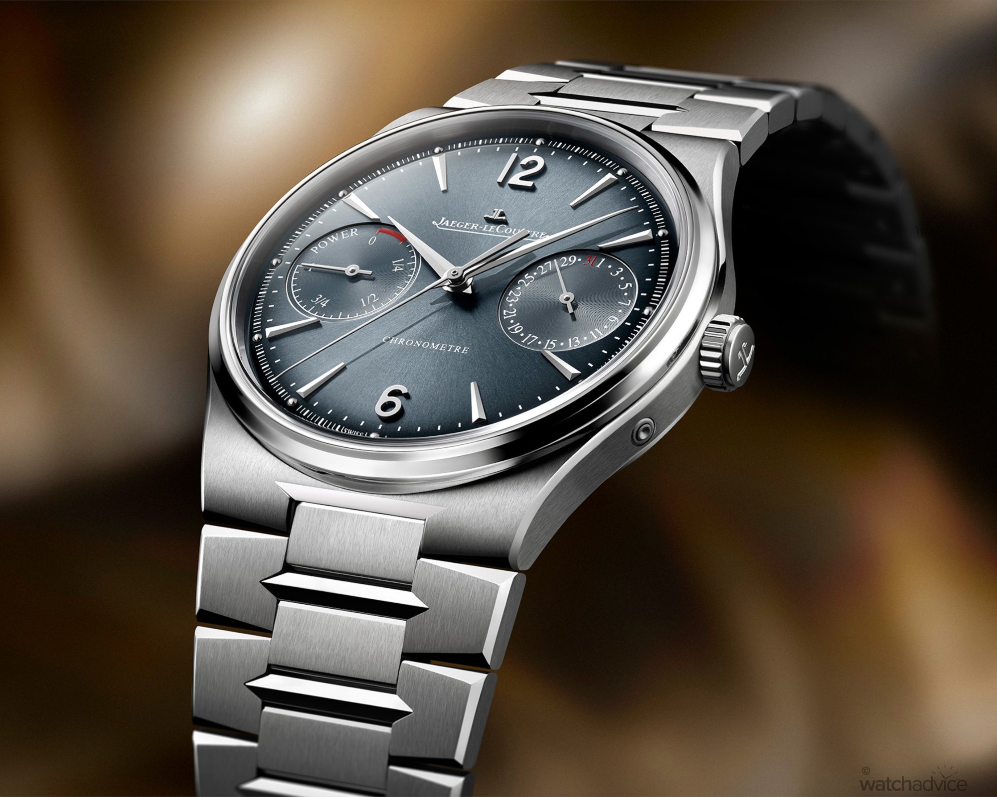 Though the Master Control Chronometre is undoubtedly more modern than its older siblings, the overall aesthetic remains balanced. The dials are sunray-brushed and available in blue-grey or warm bronze tones depending on case material. Each is finished with a subtle gradient that shifts under changing light. Sub-dials are carefully integrated, featuring azuré finishes and precise symmetry, while the peripheral minute track is calibrated to enable readings down to a quarter of a second. Of course, the Dauphine hands appear throughout, maintaining a familiar Jaeger-LeCoultre identity.