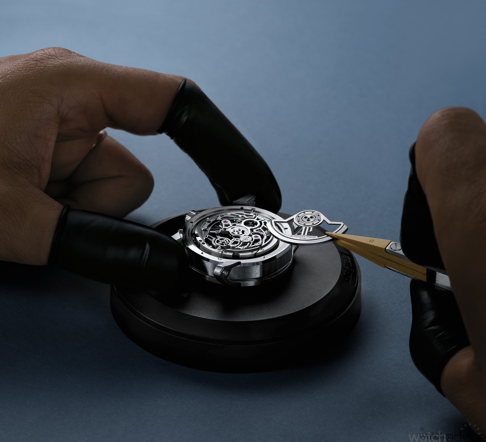 The various design elements, along with the movement, have more than 100 hand-polished angles, which have been meticulously done by hand with an alternation of sandblasting and satin-brushing.