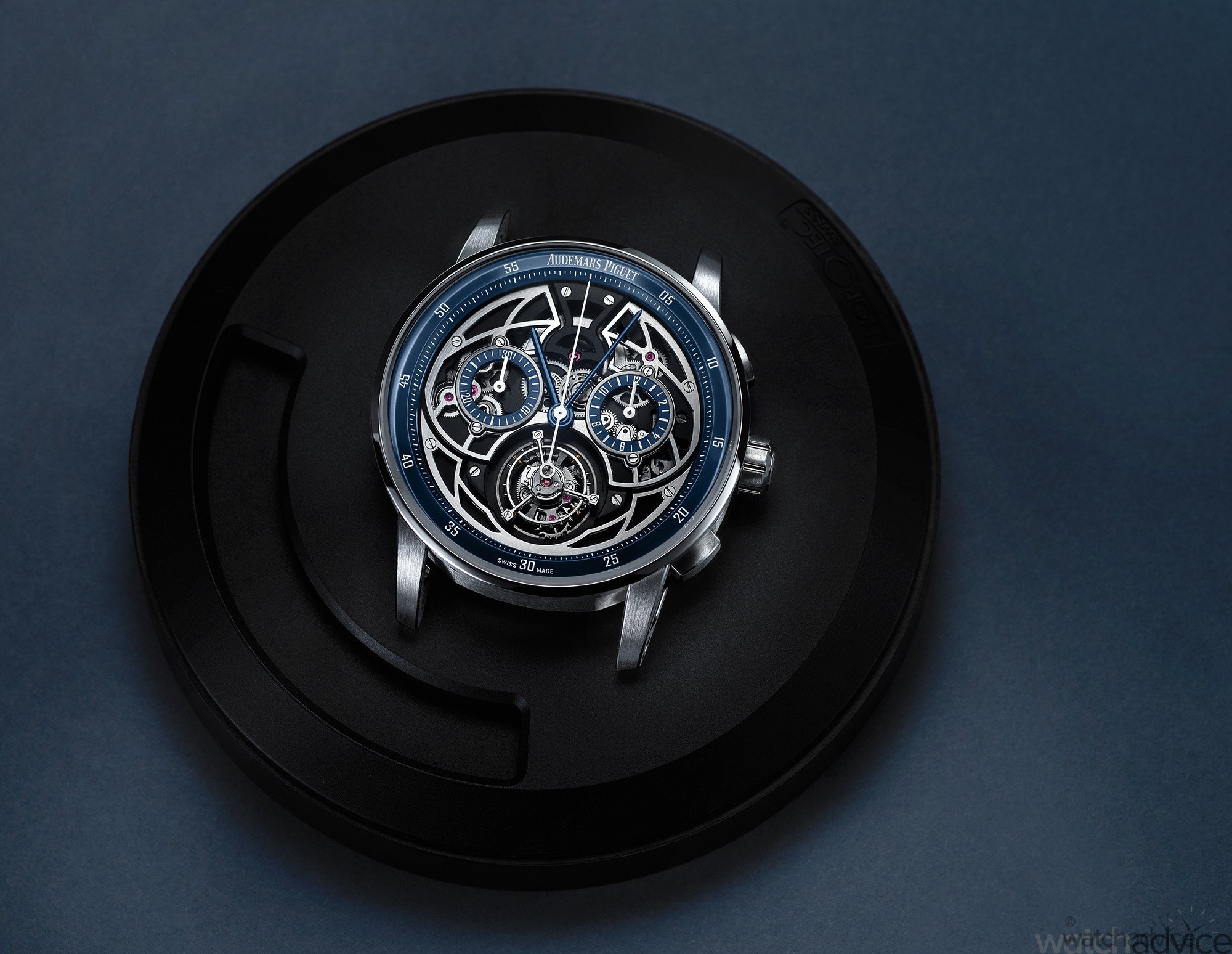 Audemars Piguet has created something special with the dial on this timepiece. It’s as complicated as it is artistic. The three-dimensional architectural face blends the dial and movement. The movement features rhodium-toned and black galvanic open-worked bridges which is a brilliant move, as it only shows what the viewer needs to see, and doesn’t over clutter the dial.