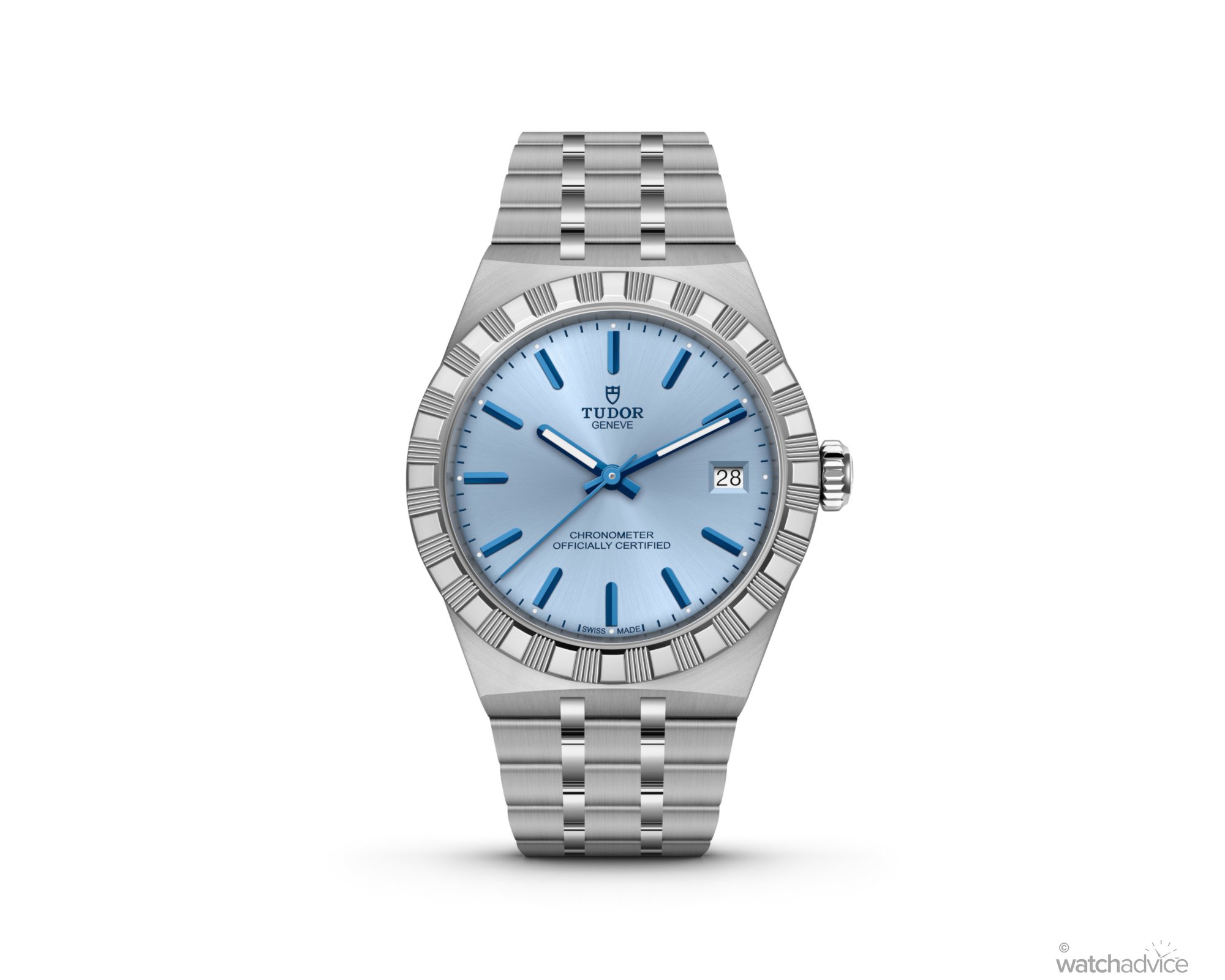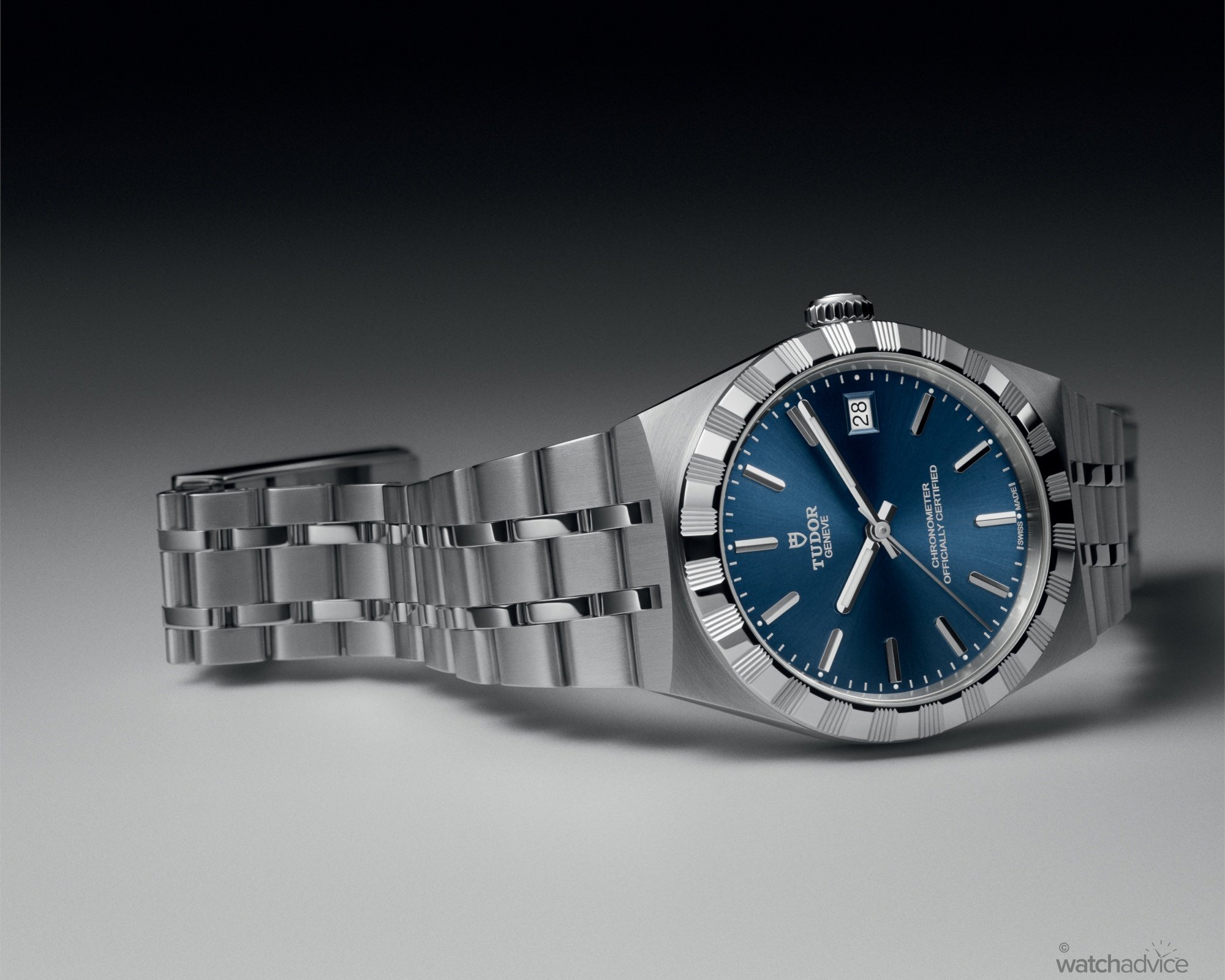 As before, the Tudor Royal is available in either stainless steel or a two-tone configuration of steel and gold plate. Also retained is the five-link integrated bracelet, flowing seamlessly from the case. Beyond its distinctive look, a rarity in the integrated bracelet watch segment, Tudor has kept comfort front of mind.