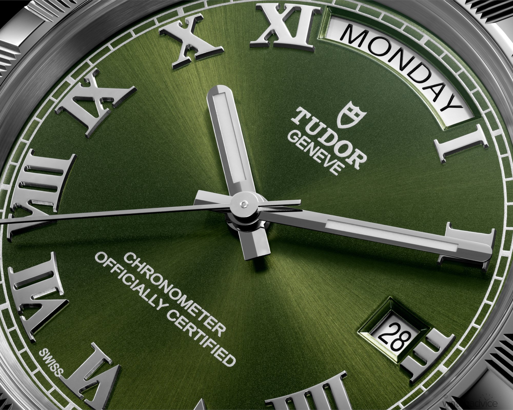 | Dial | Sunray brushed Blue / Green / Ice Blue / Chocolate with stick indexes Sunray brushed Silver / Salmon / Champagne with applied Roman numerals Sunray brushed Ivory with diamond indexes & applied Roman numerals |