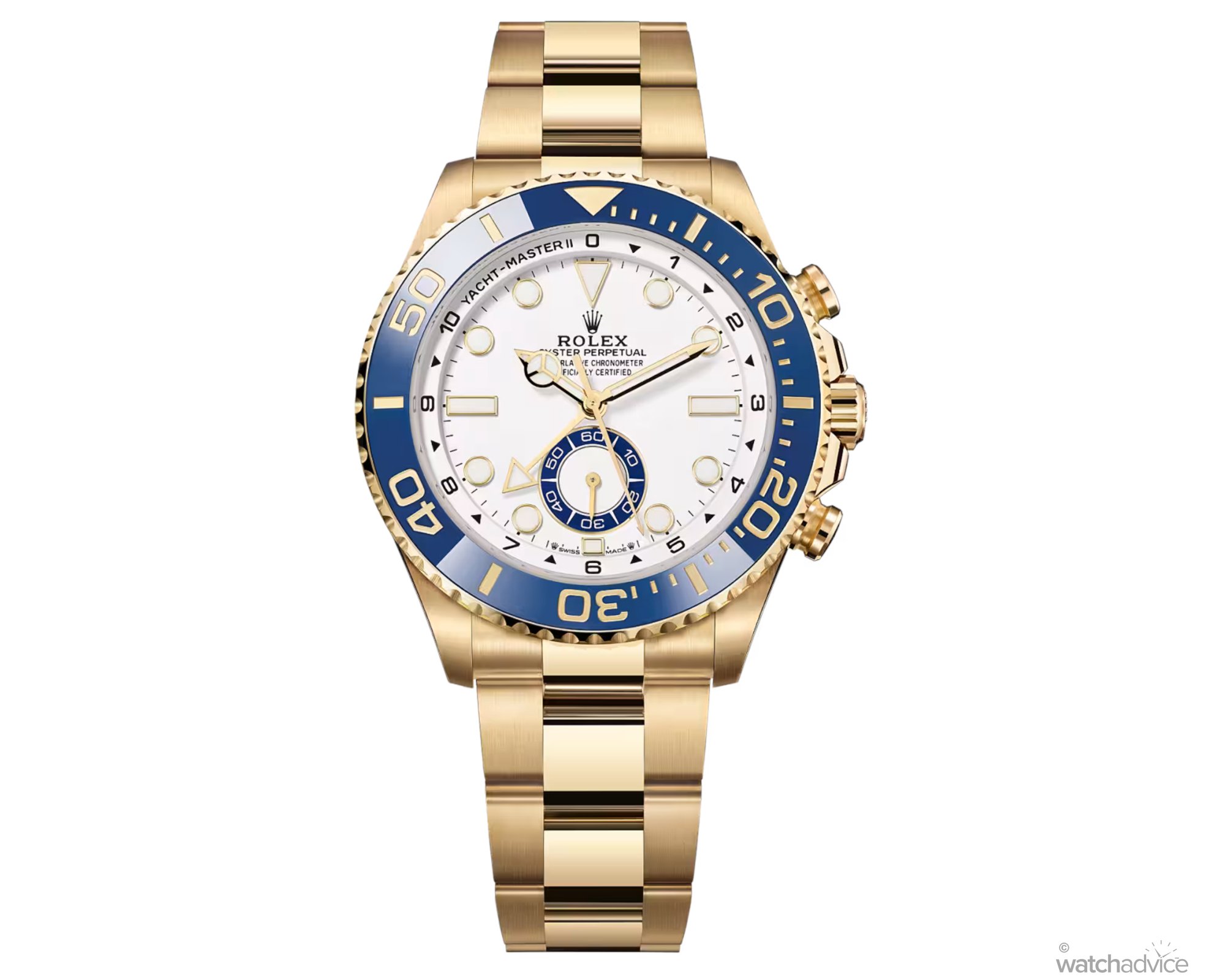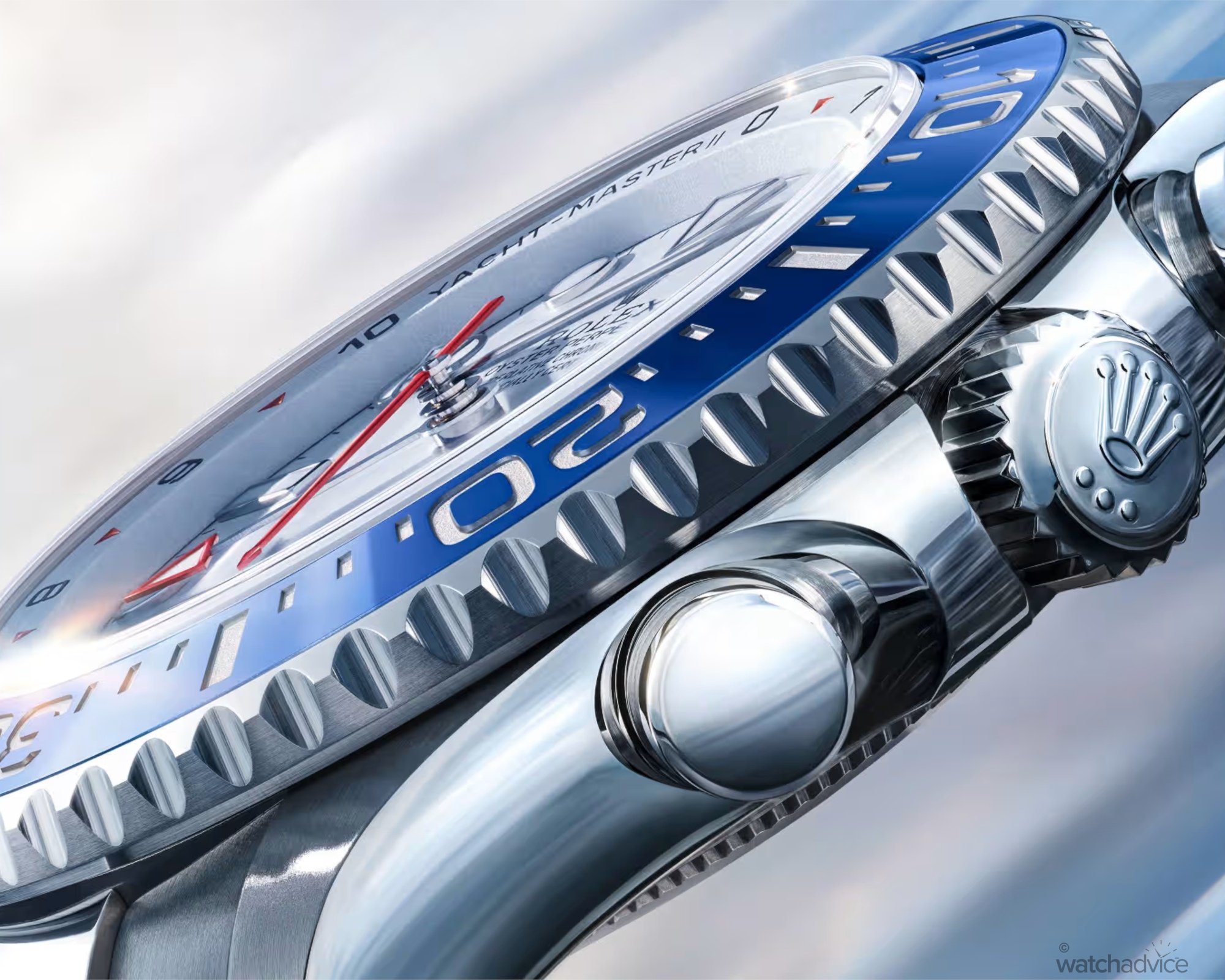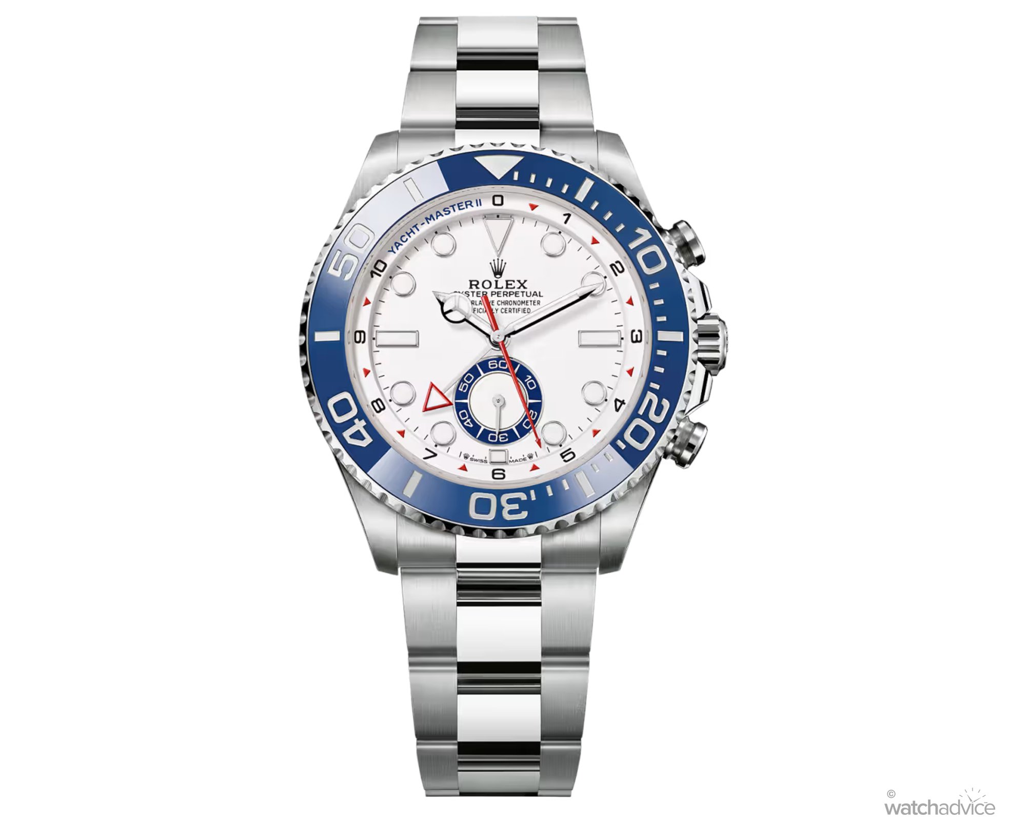 With changes to its ergonomics, Rolex has also fully redesigned the Yacht-Master II’s dial. Addressing the original version’s pain point of visual excess, the matte white dial has been cleaned up significantly.