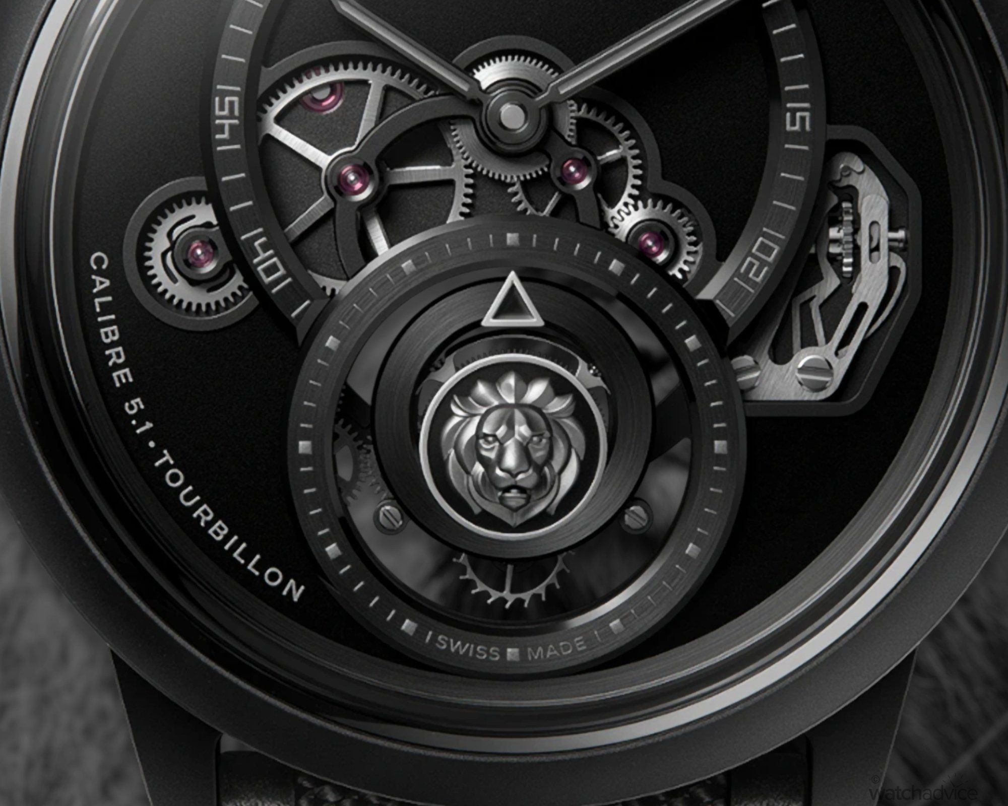 The new Chanel Monsieur Lion Tourbillon is housed in a 42mm case crafted from matte black, highly resistant ceramic, paired with black-coated steel elements, including the bezel, crown and caseback. Ceramic has long been a major part of Chanel’s catalogue and has been refined by the brand for enhanced durability, scratch resistance and sheen. Unlike polished surfaces that reflect light, the matte black construction absorbs it, creating a sense of depth and understated power. Additionally, the use of ceramic lightens the overall wearing experience, allowing for a bold aesthetic without the bulk associated with steel.