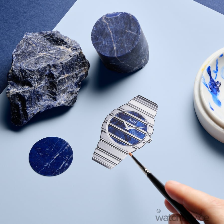 What makes the use of this sodalite stone so special for this model is that no two watches are exactly the same. This is because sodalite is a natural stone, and each dial carries its own unique veining, tonal variation, and character, which means that every Piaget Polo 79 has a slightly different personality. It gives the timepiece a much more individual feel and adds to the uniqueness factor of each watch.