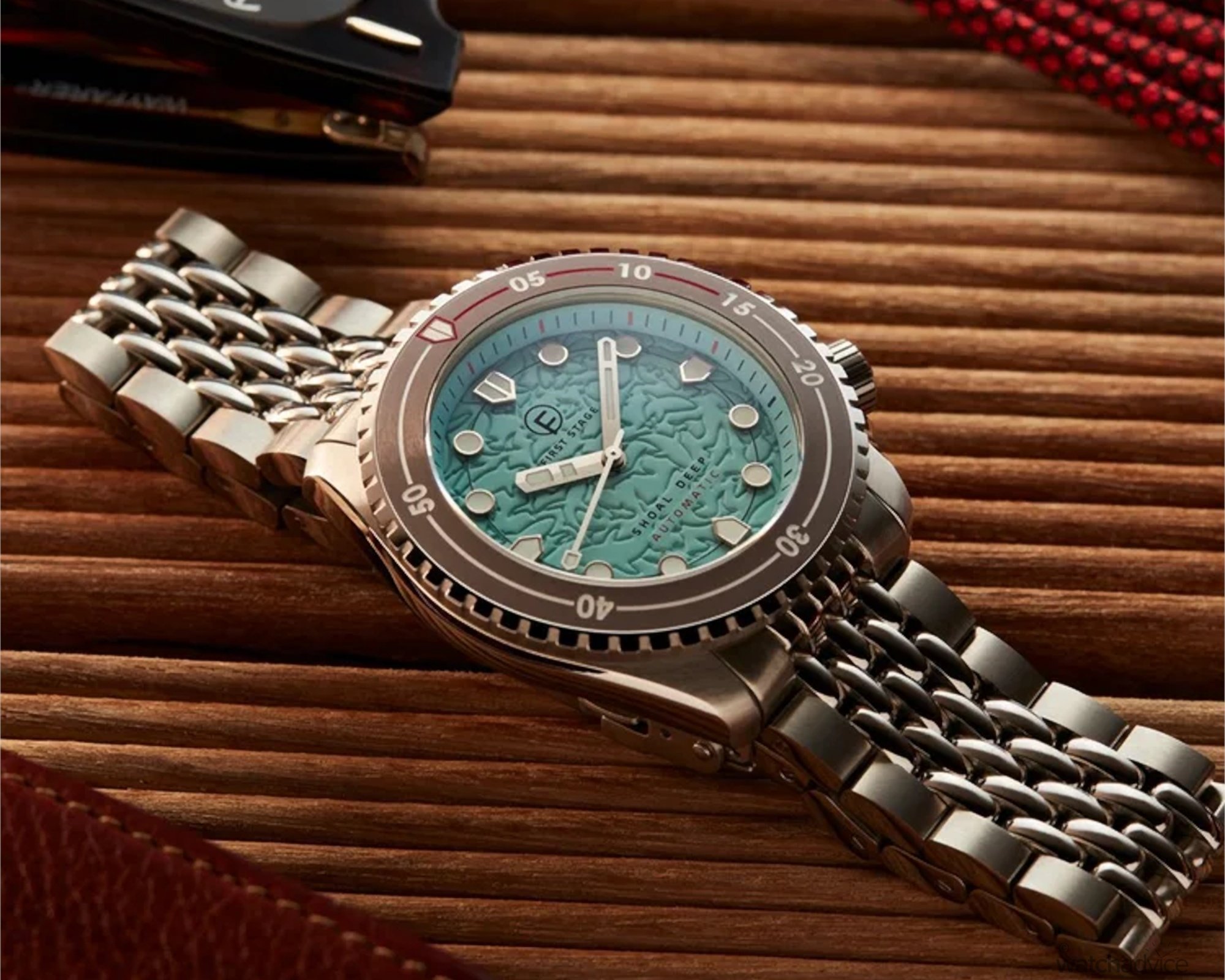 Each collection is distinct, yet clearly iterative — built by expanding on established expectations rather than rejecting them. The Shoal Deep, for instance, functions as a purpose-built dive watch with the expected robustness and legibility, but introduces a more expressive dial design featuring aquatic motifs. The Memoir, by contrast, takes on the role of a dress watch, drawing from Art Deco influences while still incorporating modern specifications such as a hardened steel case rated to 800 Vickers and 50 metres of water resistance. Neither choice is strictly necessary, but both reflect a design culture that resists strict categorisation.