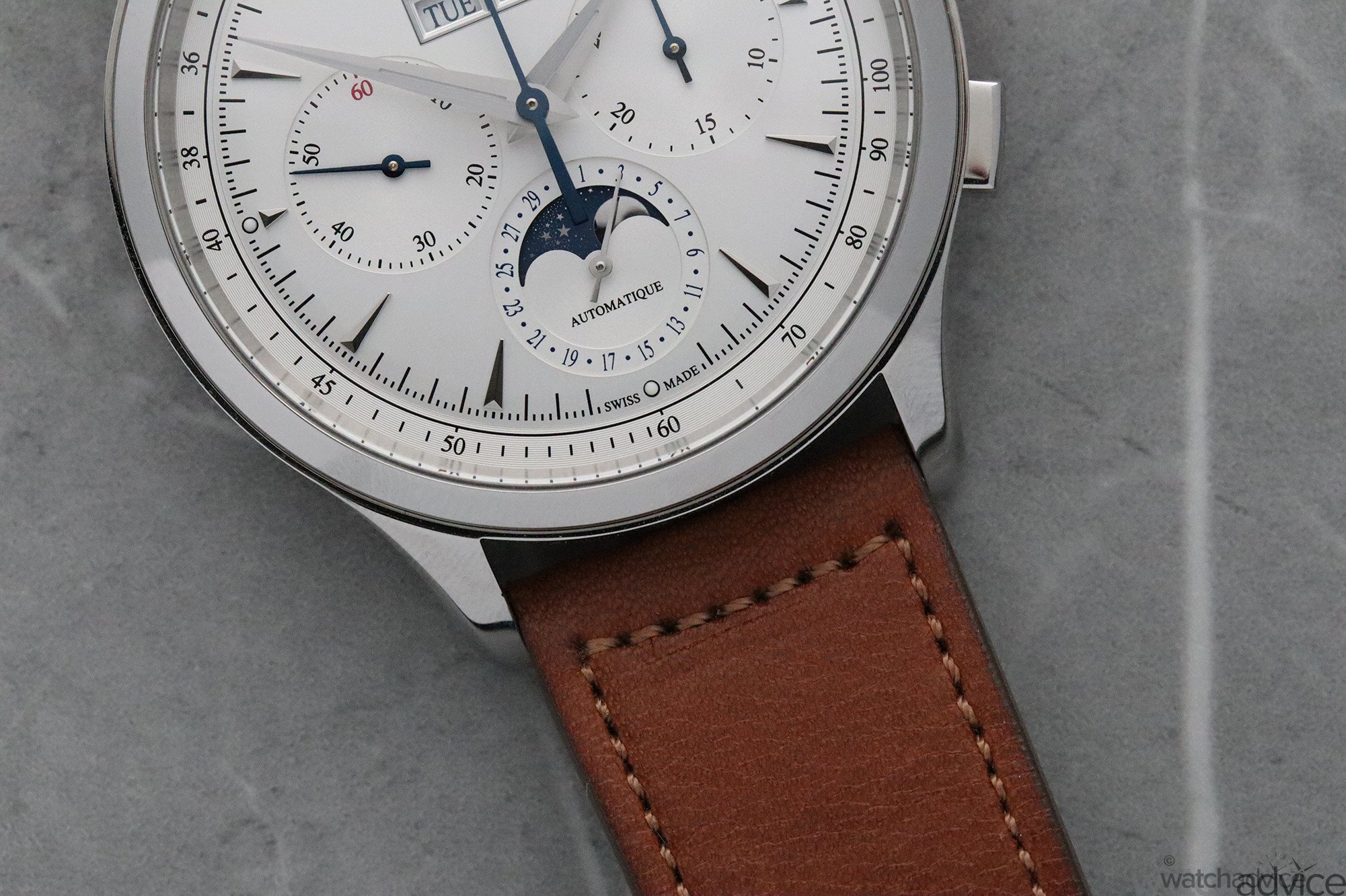 I have to say; I fell in love with this watch the second I tried it on. If there were ever one perfect watch to wear, this would be it. With a chronograph, day, date, month, Moonphase and a pulsation meter, I can’t think of any other watch with that many impressive functions look this beautiful. Normally, you’d have to own a couple of watches to get the functionality of this watch. So, if you are the market for one watch that does it all or in the process of downsizing your collection, I can’t recommend this enough!