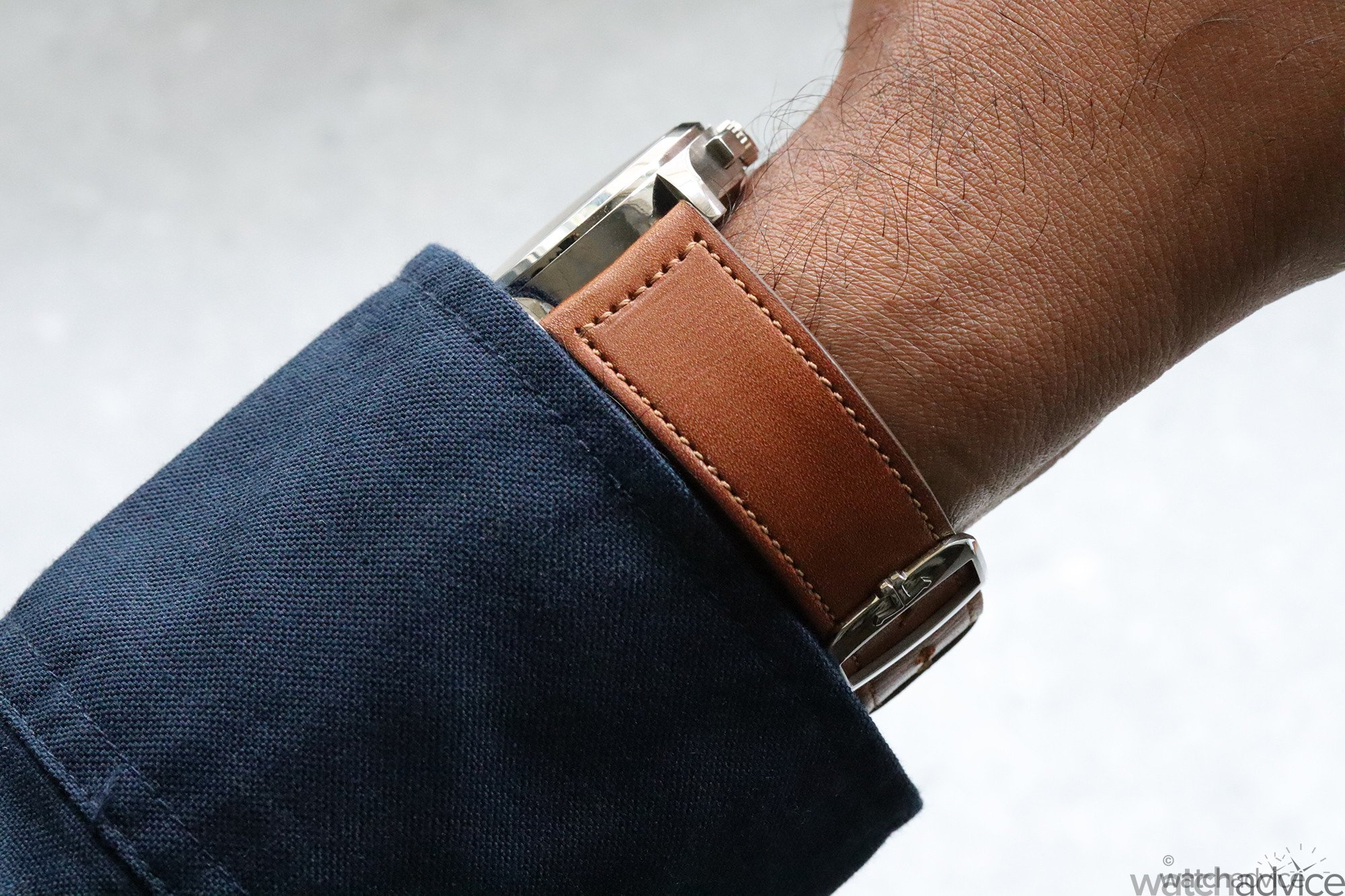 On a 6.5inch wrist, the master control chronograph Calendar 40mm casing sits thanks to the shorter lugs perfectly. With a thickness of 12.05mm, the watch can be worn with any attire any day of the week. The silvered grey sunray-brushed dial layout is easy on the eye and time can be read easily even with all the jam-packed information available. The soft calf leather strap is super comfortable on the wrist and paired with a stainless steel folding clasp is easy to operate! Over time this leather will age and will complement the overall look beautifully.